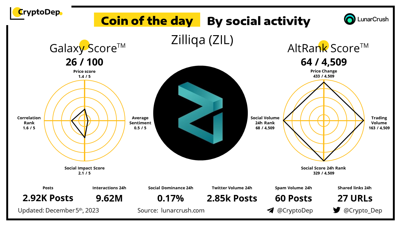 ββCoin of the day by social activity - Zilliqa (ZIL).