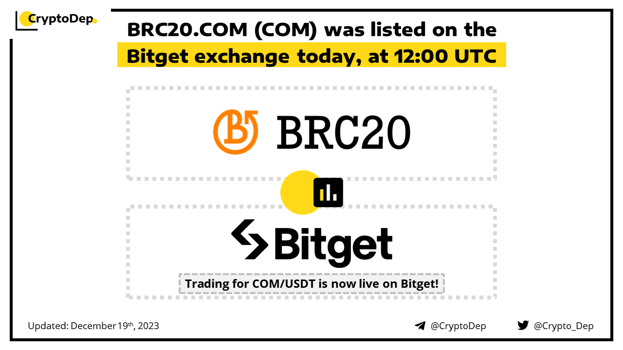 Trading for the COM/USDT trading pair is now live on Bitget! Deposits are now live and withdrawals will open on December 20th, 11:00 UTC. COM powers the BRC20.ΡΠΎm ecosystem, being the first BRC20 token to bring true utility to its holders