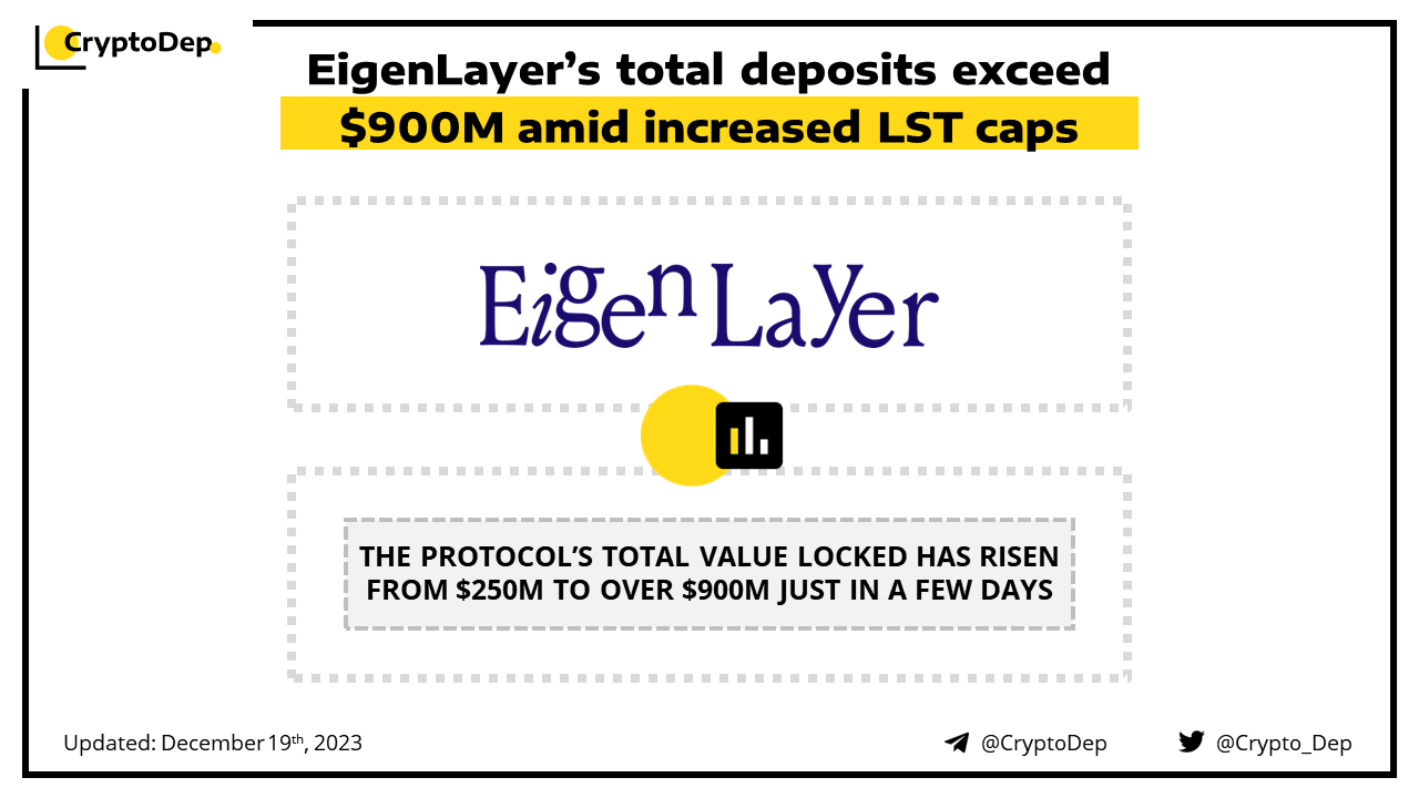 ββEigenLayerβs total deposits exceed $900M amid increased LST caps