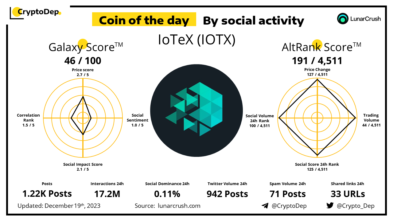 ββCoin of the day by social activity - IoTeX (IOTX)