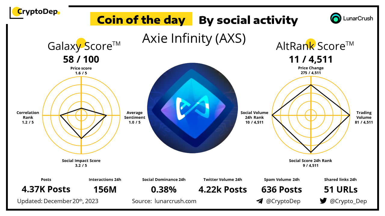 ββCoin of the day by social activity - Axie Infinity (AXS).