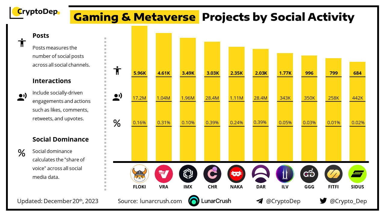 ββGaming & Metaverse Projects by Social Activity