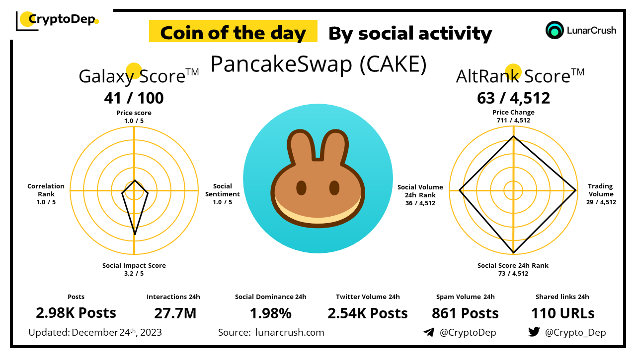ββCoin of the day by social activity - PancakeSwap (CAKE)