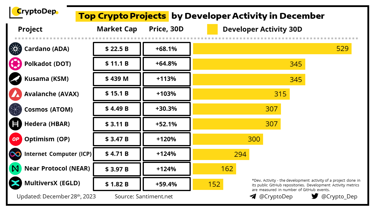 Dev.Activity - the development activity of a project done in its public Github repositories. Development Activity metrics are measured in a number of Github events.