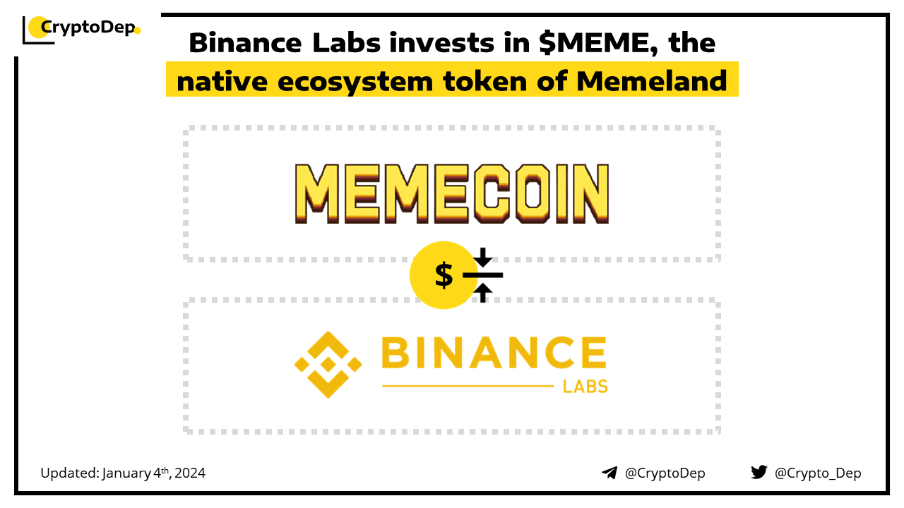 Binance Labs, the venture capital and incubation arm of Binance, has made an investment in Memecoin, the native ecosystem token of Memeland. Memelandβs core focus is on building and investing in SocialFi and creator economies to connect creators and communities through its MEME token and NFTs by leveraging the meme internet culture. Furthermore, Memecoin was the 39th project on the Binance Launchpool.