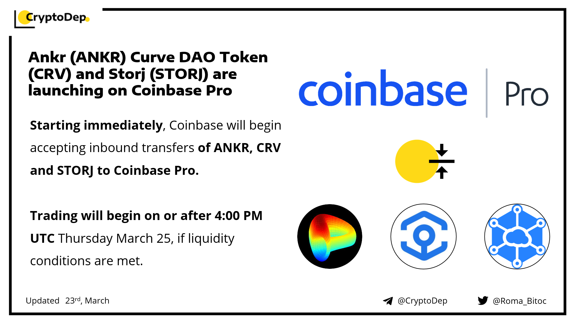 👉🏻https://blog.coinbase.com/ankr-ankr-curve-dao-token-crv-and-storj-storj-are-launching-on-coinbase-pro-62dbd9208d7c