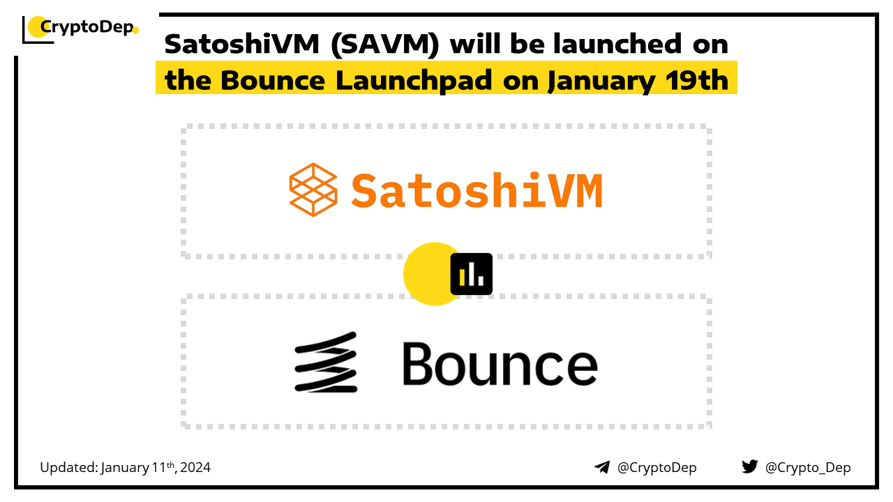ββSatoshiVM (SAVM) will be launched on the Bounce Launchpad on January 19th