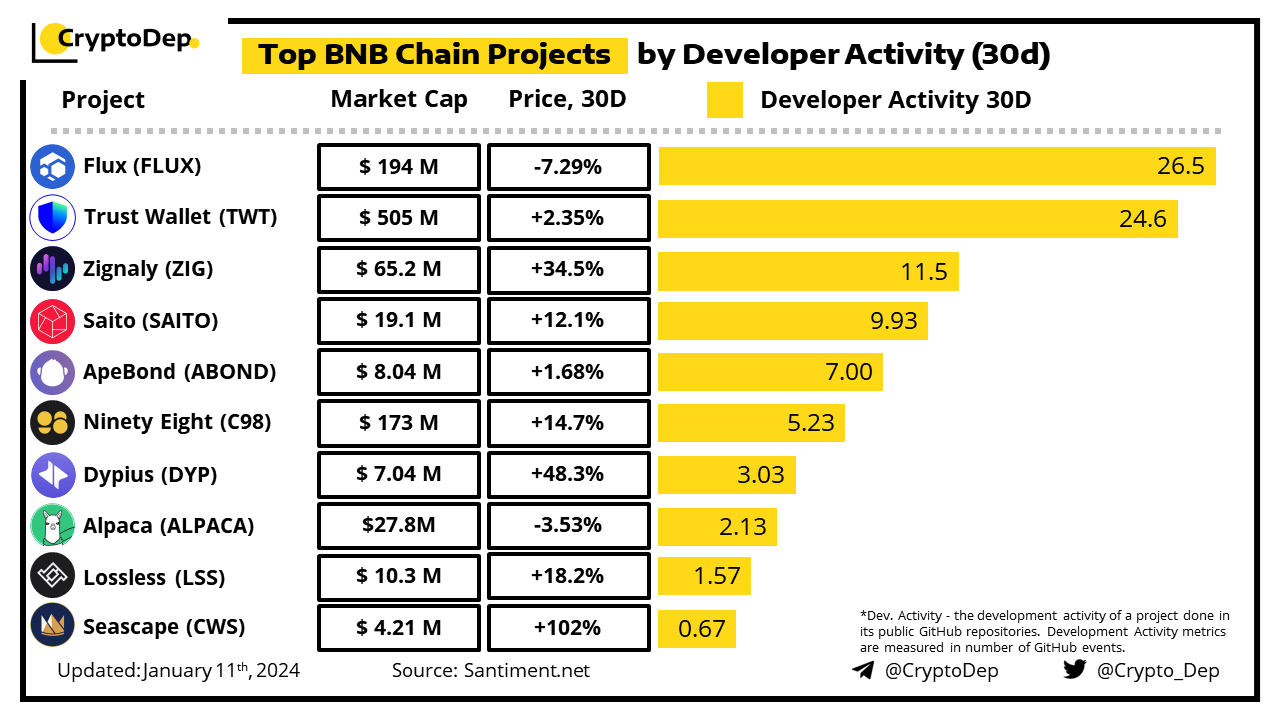 ββTop BNB Chain Projects by Developer Activity (30d)