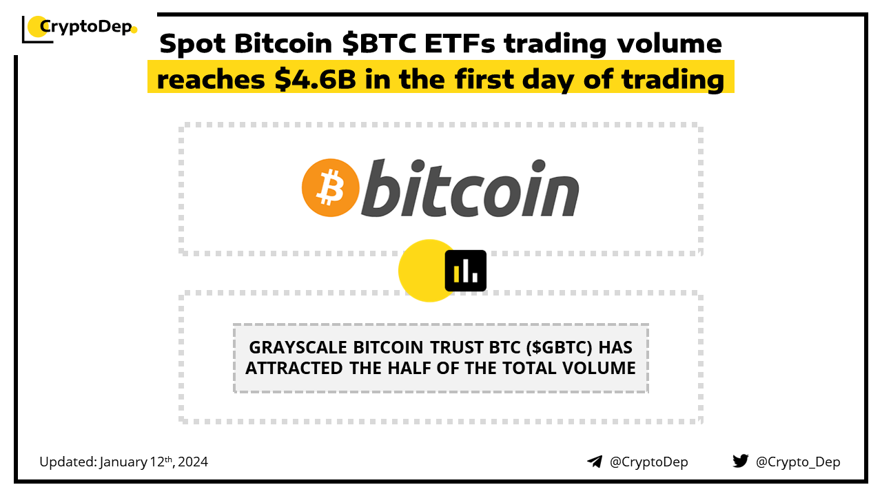 ββSpot Bitcoin $BTC ETFs trading volume reaches $4.6B in the first day of trading