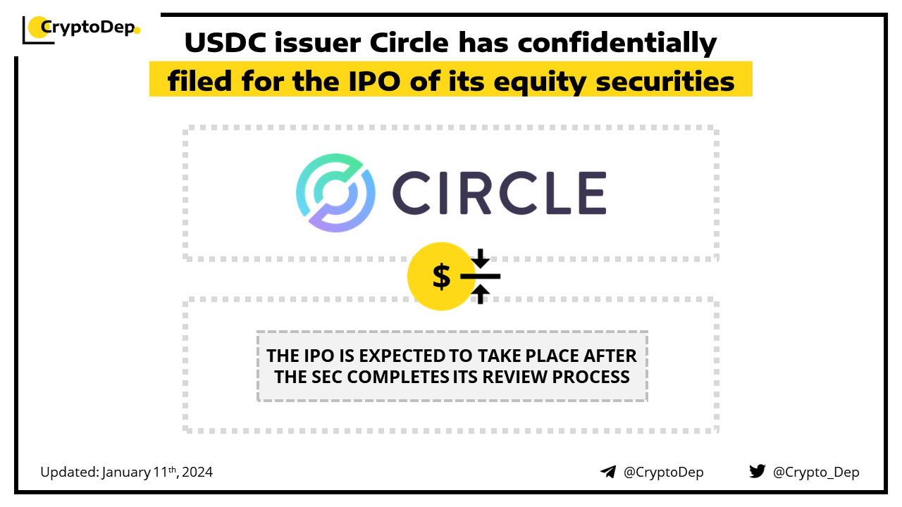 Circle, the $USDC stablecoin issuer, confidentially files for US IPO. Circle did not disclose the number of shares it plans to sell or the proposed price range for its filing. The IPO is expected to take place after the SEC completes its review process, subject to market and other conditions. Circle's investors include financial heavyweights like Goldman Sachs, Fidelity and BlackRock.