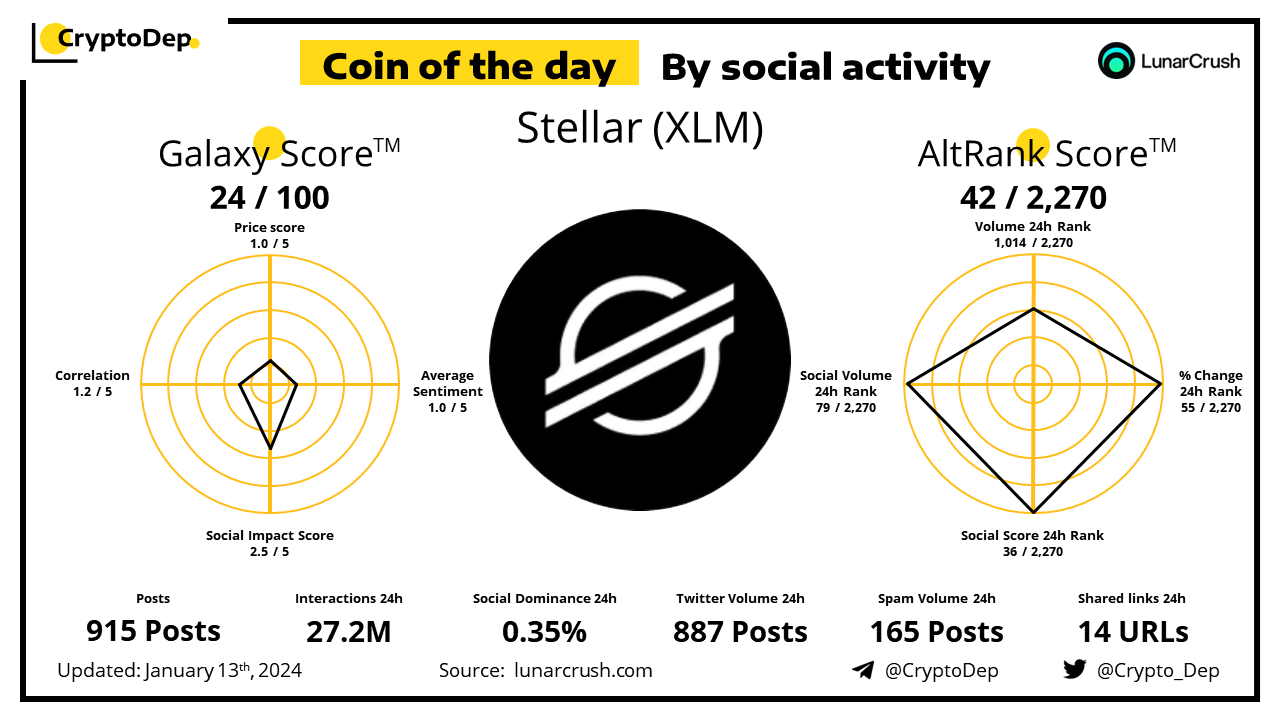 ββCoin of the day by social activity - Stellar (XLM).