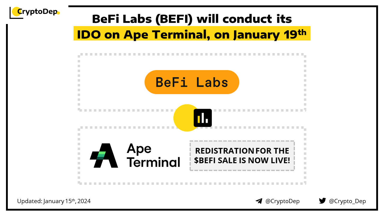 BeFi Labs (BEFI) will conduct its IDO on Ape Terminal, on January 19th