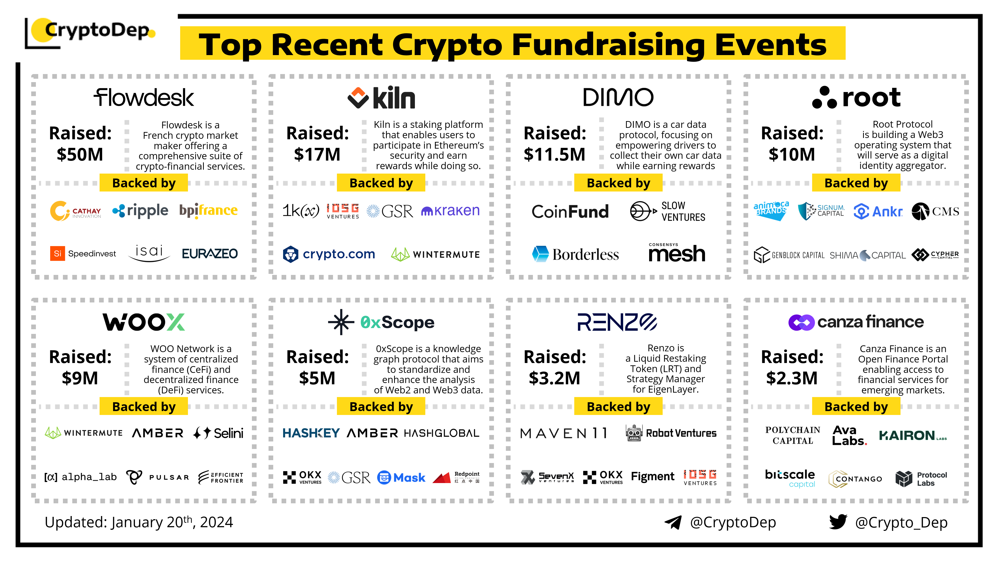Presenting a list of some recent crypto fundraising events, backed by well-known investors such as Polychain, CoinFund, Animoca Brands, Robot Ventures, Ava Labs, Hashkey, Maven 11, Borderless, 1kx, IOSG, Wintermute, CMS, Ankr, OKX Venturs, Crypto.Ρom, Kraken, Ripple, and others. Let's take a look!