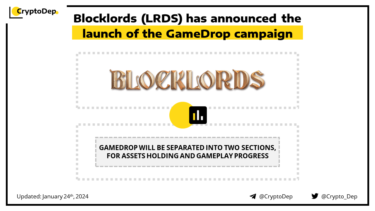 Blocklords reveals the details of the GameDrop activity, giving the community a chance to earn the $LRDS token. GameDrop will be separated into 2 sections, one for asset owners and one for gameplay progress. The GameDrop 1 Snapshot hasn't been taken yet.