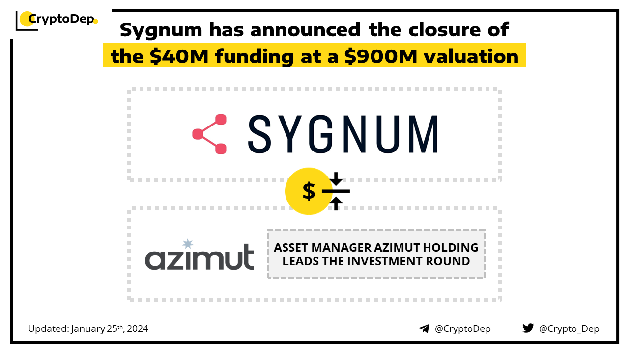 ββSygnum has announced the closure of the $40M funding at a $900M valuation