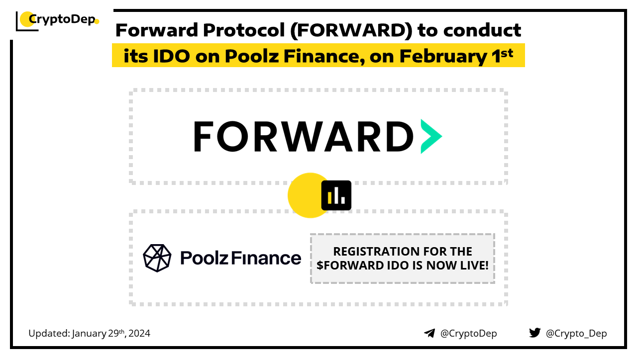 The $FORWARD IDO will follow the refund model and will go live on February 1st. The registration for the sale is now live, users need to buy & lock $POOLX and complete the whitelist requirement. Forward Protocol is an AI-driven, no-code, cost-effective tool to create blockchains, subnets, and dApps.