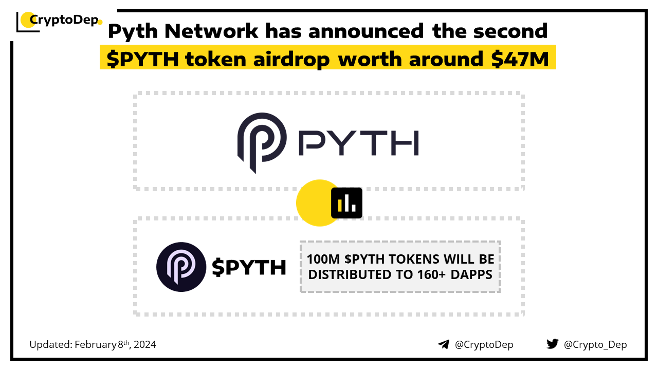 ββPyth Network has announced the second $PYTH token airdrop worth around $47M