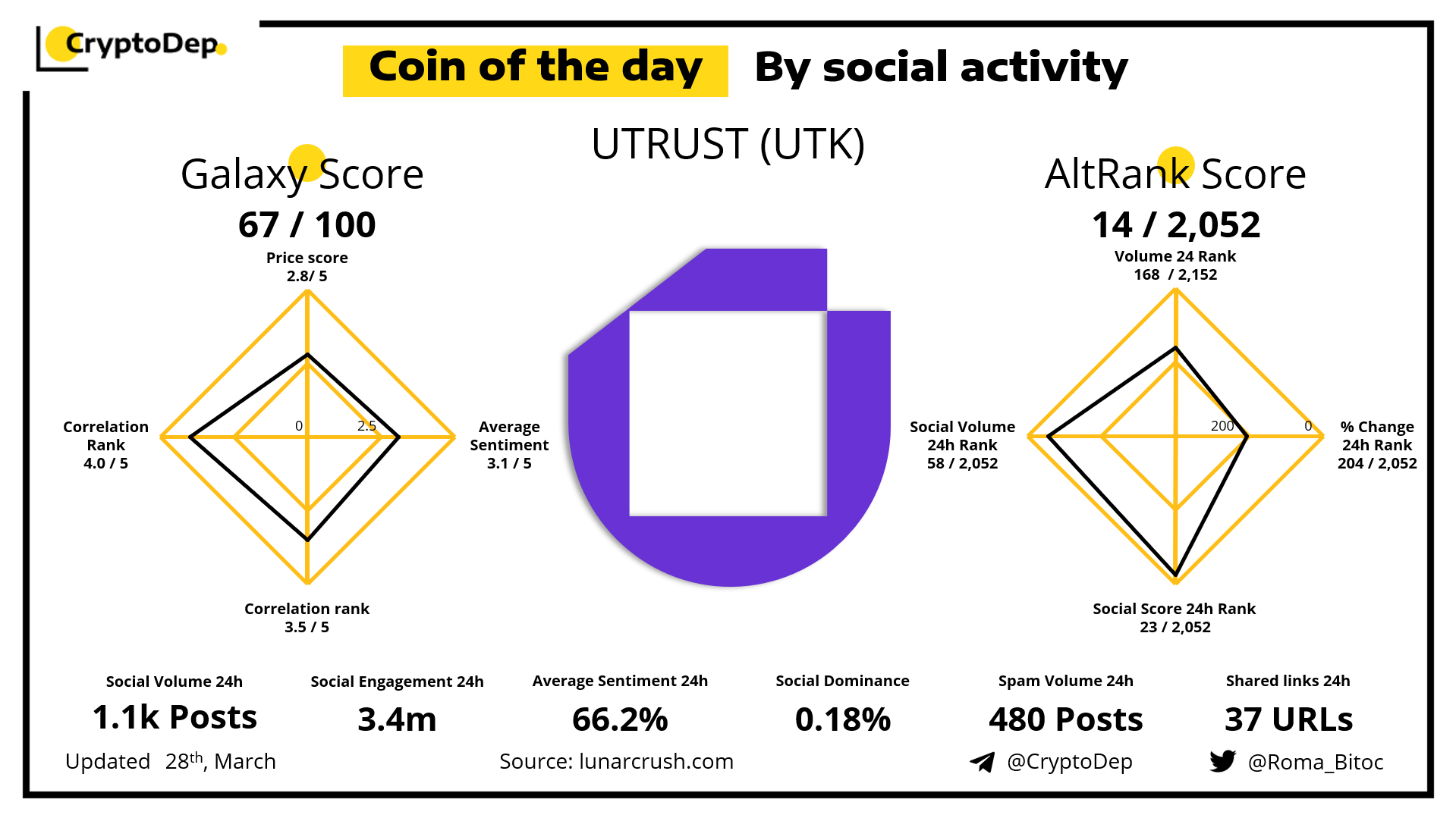 ββCoin of the day by social activity - UTRUST (UTK).