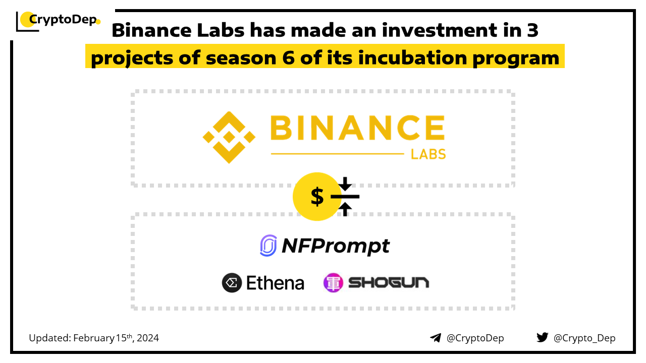 Binance Labs, the venture capital and incubation arm of Binance, has announced an investment in the three best-performing projects of Season 6 of its Incubation Program. Among the projects that have received the investment are NFPrompt, Ethena Labs, and Shogun. Moreover, Binance has announced the upcoming next batch of S6 Incubation investments.