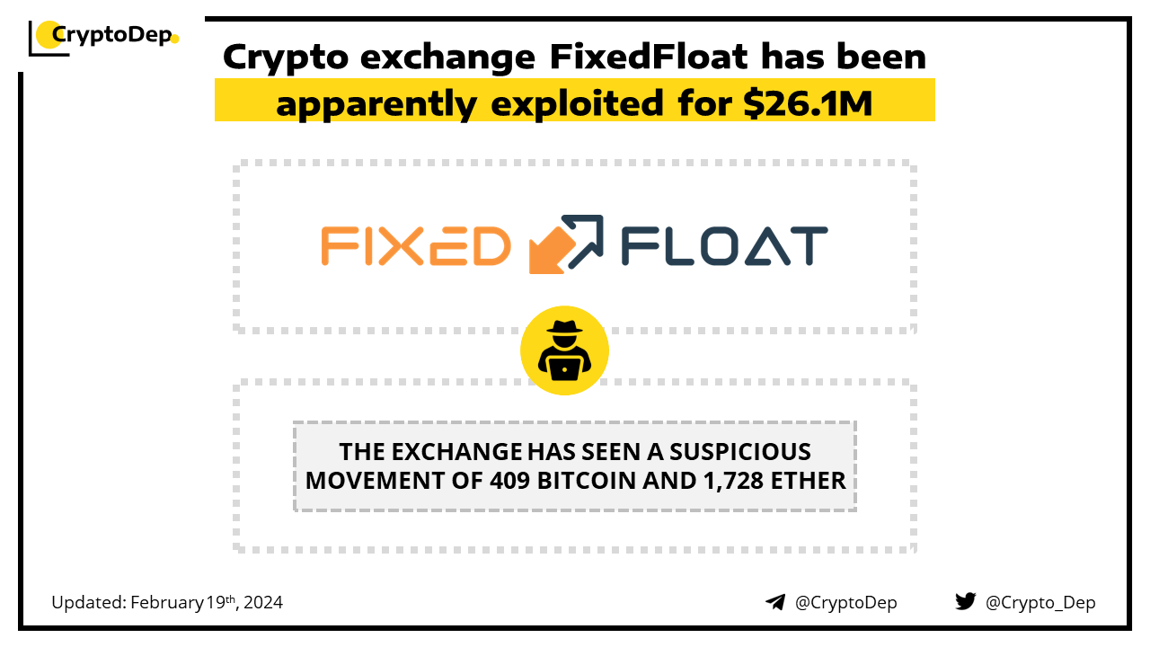 ββCrypto exchange FixedFloat has been apparently exploited for $26.1M
