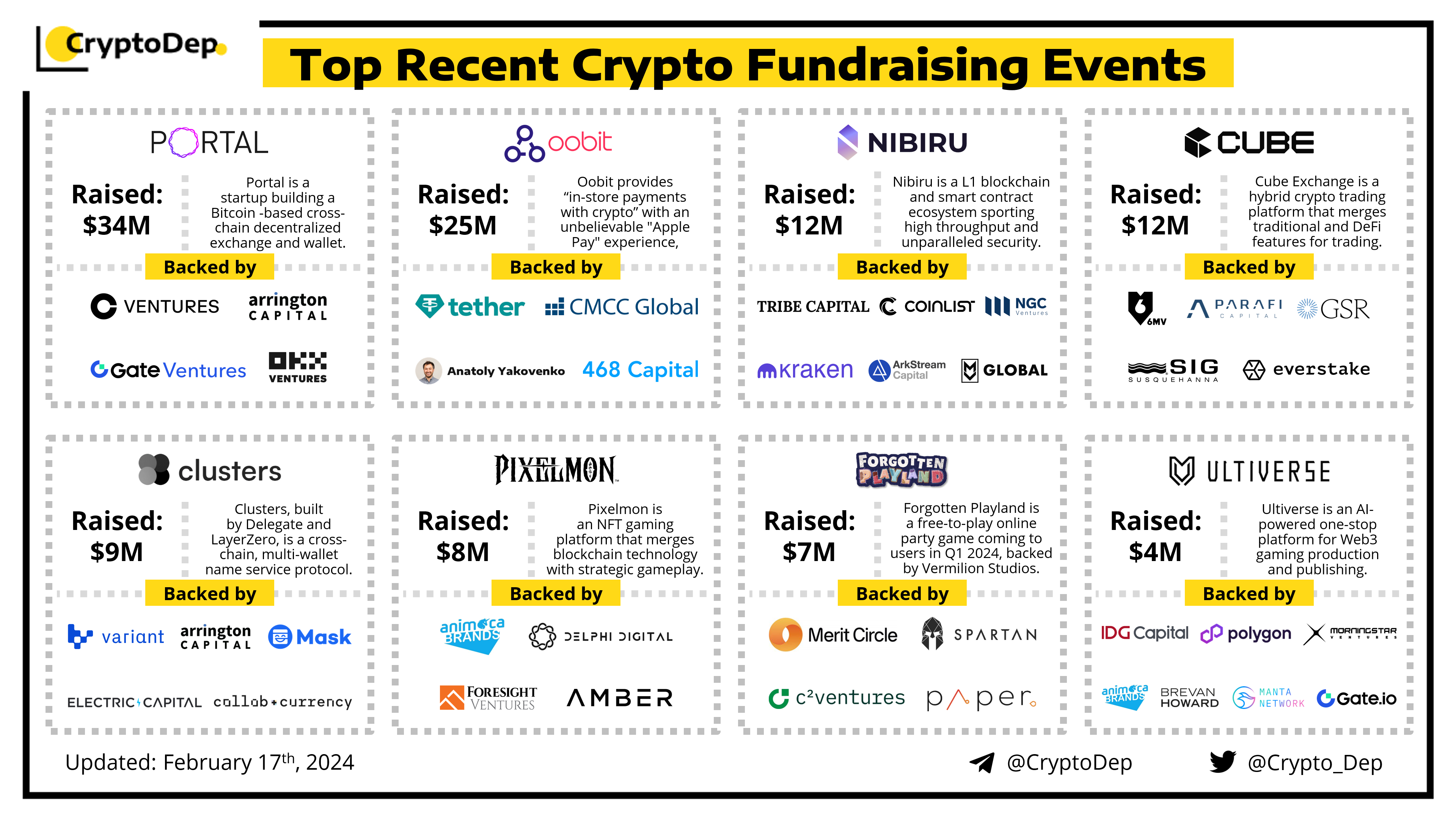 Presenting a list of some recent crypto fundraising events, backed by well-known investors such as Coinbase Ventures, Animoca Brands, Delphi Ventures, Spartan, Electric Capital, Variant Fund, Arrington Capital, Morningstar Ventures, Polygon Ventures, OKX Ventures, Merit Circle, NGC Ventures, Kraken Ventures, Tether, Everstake Capital, and others. Let's take a look!