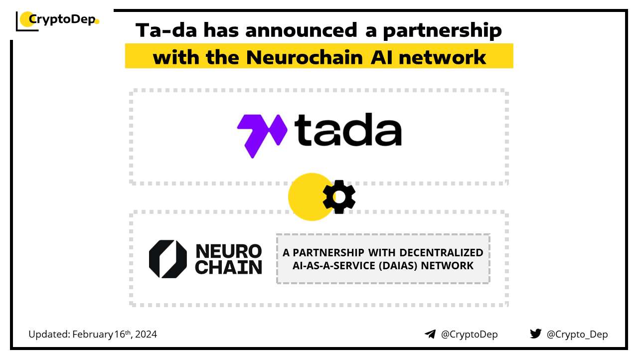 Ta-da partners with Neurochain AI, the L1 decentralized AI-As-A-Service (DAIAS) network, that offers a ready-to-use AI infrastructure for developers to create AI-powered dApps. Previously Ta-da went live on xExchange and established a partnership with the Nomiks token design lab. Ta-da is a "talk-to-earn" Web3 app backed by Morningstar Ventures, MultiversX, GBV Capital, Alpha Protocol Ventures, and others.
