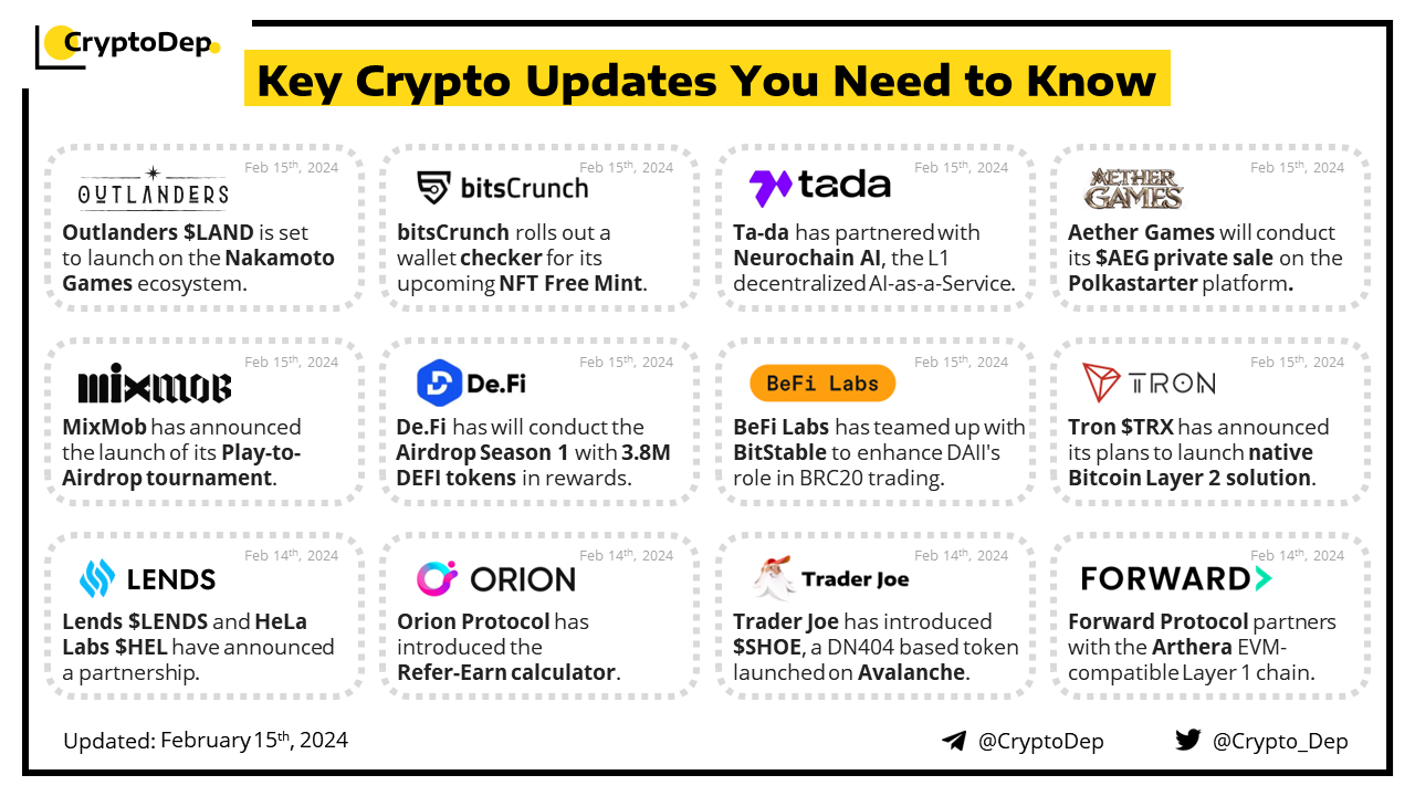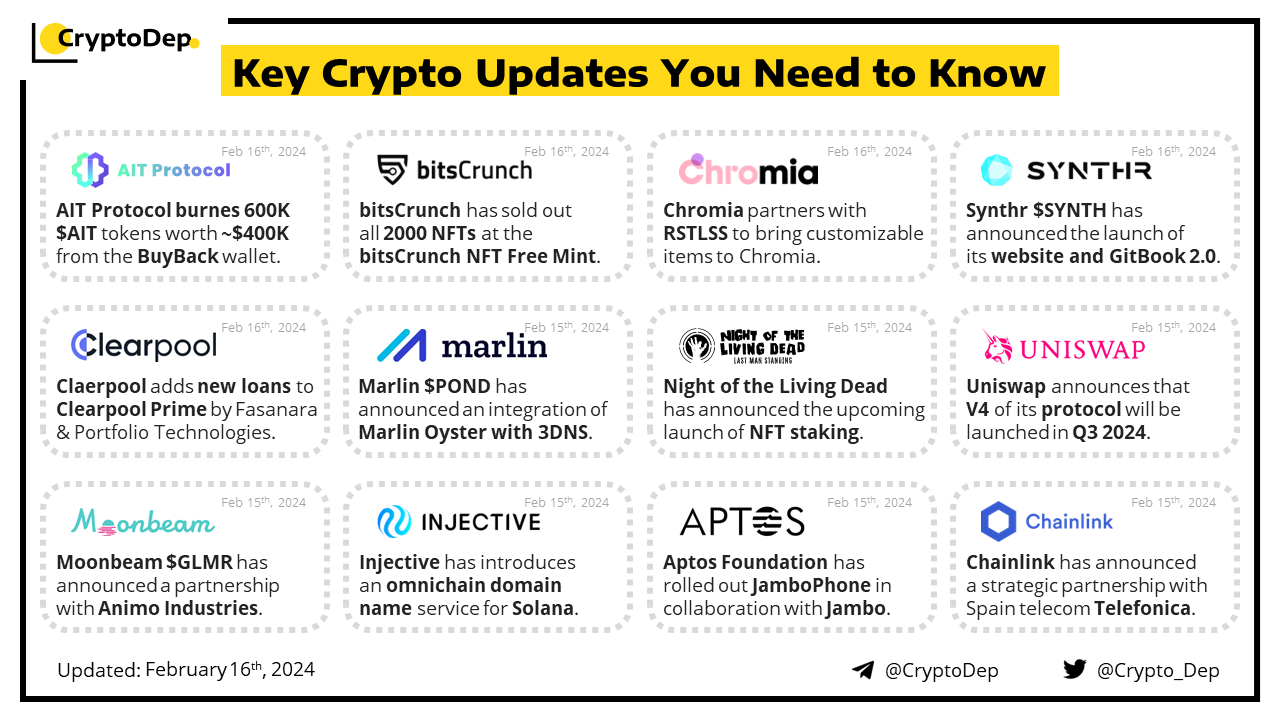 bitsCrunch will conduct its initial listing on KuCoin, Gate, and Bybit on February 20th. at 13:00 UTC. Previously, bitsCrunch conducted its token sale on Coinlist. bitsCrunch is an AI-enhanced data network, backed by Coinbase Ventures, Animoca Brands, Morningstar Ventures, Polygon Ventures, Chainlink, and Double Peak among others, with a $6.75M total raise.