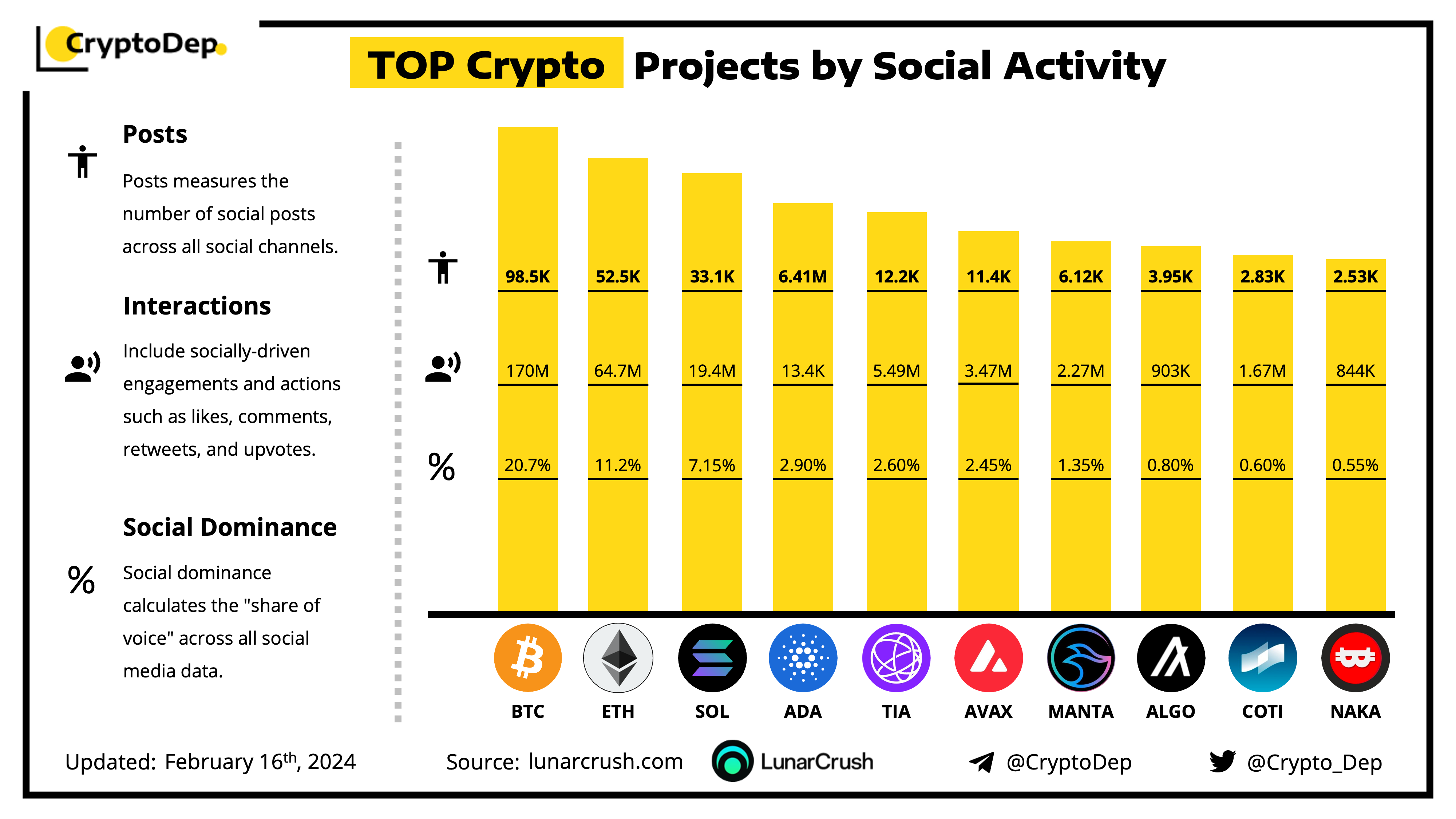 Interactions include socially-driven engagements and actions such as likes, comments, retweets, and upvotes.