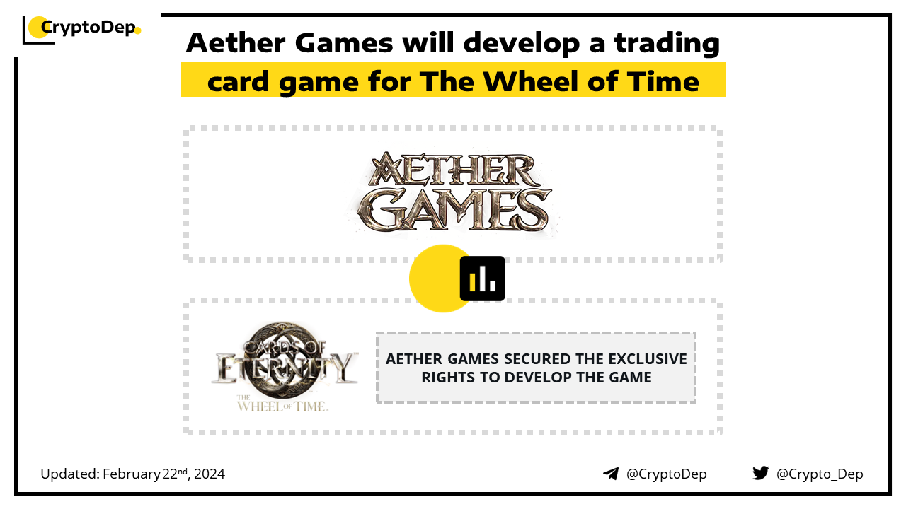 Aether Games secured the exclusive rights to develop the online trading game - Cards of Eternity for Robert Jordanβs The Wheel of Time. The game allows players to make their mark on Jordanβs fantasy world, buying, crafting, selling, and even renting out cards. It will arrive on Windows PC first before eventually coming to console and mobile devices.