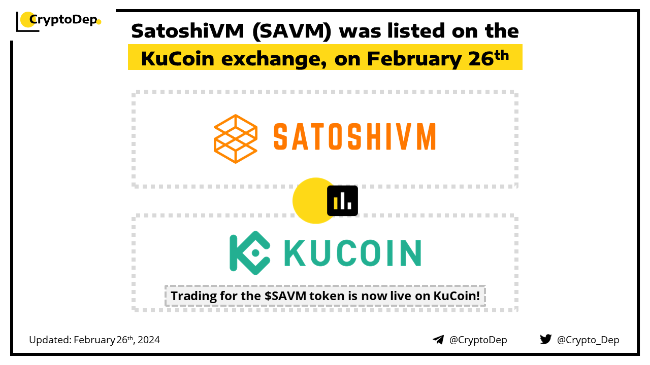 ββSatoshiVM (SAVM) was listed on the KuCoin exchange, on February 26th
