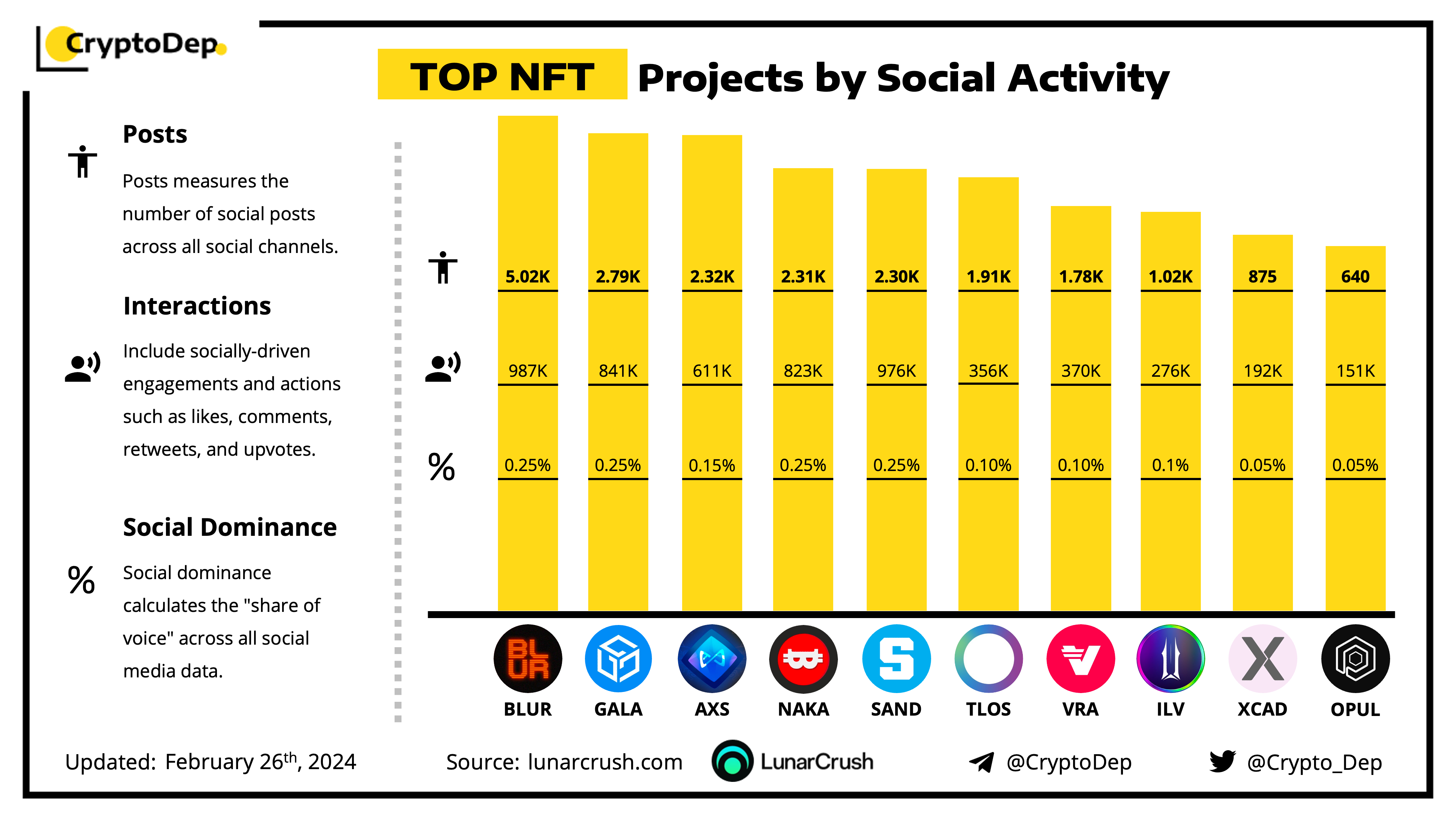 Interactions include socially-driven engagements and actions such as likes, comments, retweets, and upvotes.