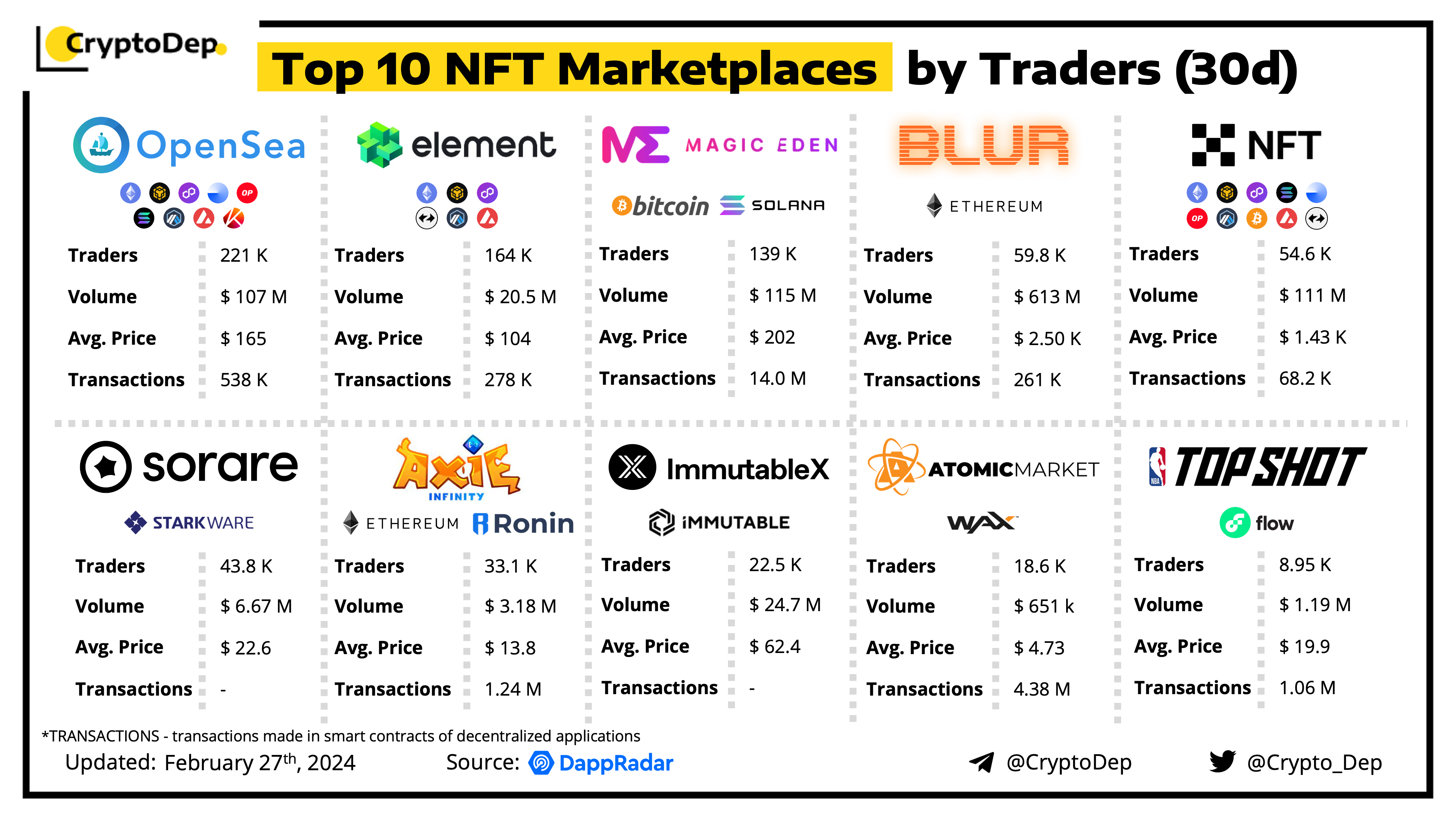 ββTop 10 NFT Marketplaces by Traders (30d)