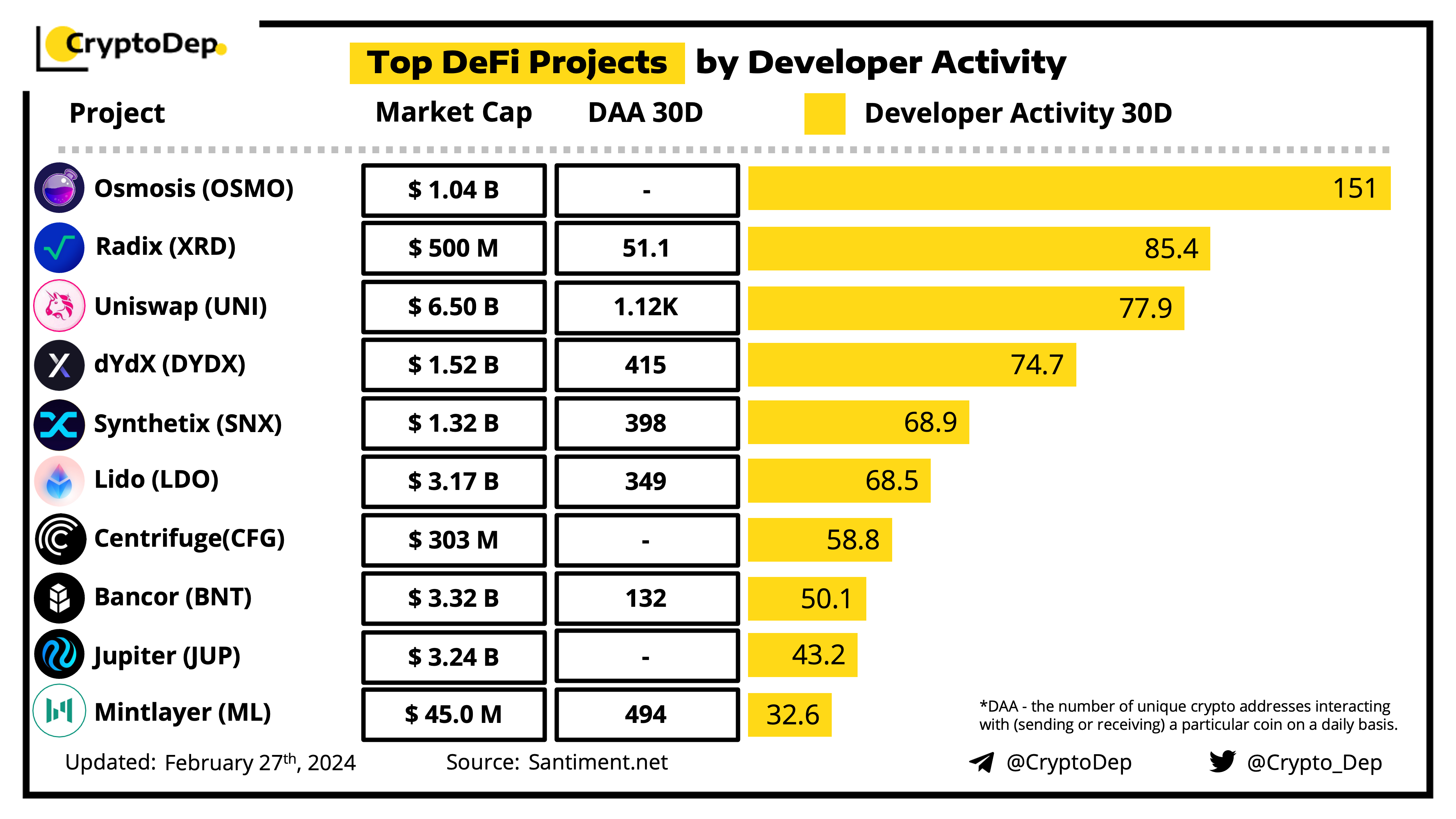 ββTop DeFi Projects by Developer Activity
