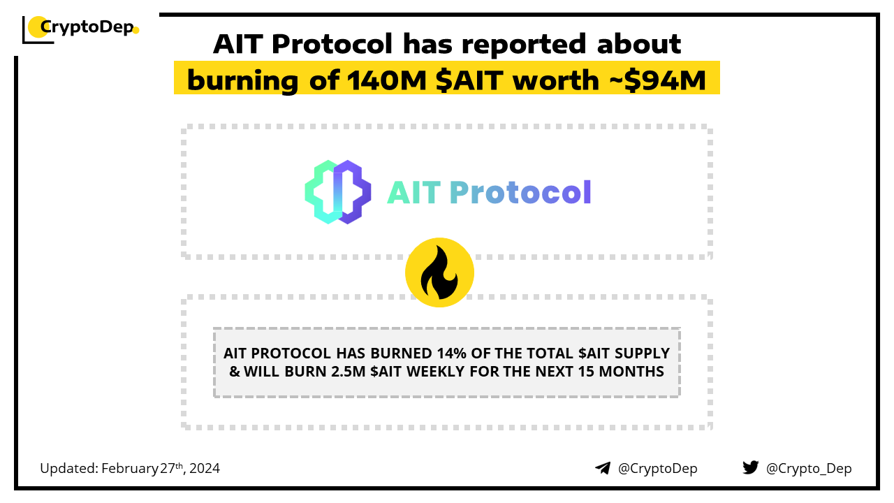ββAIT Protocol has reported about burning of 140M $AIT worth ~$94M