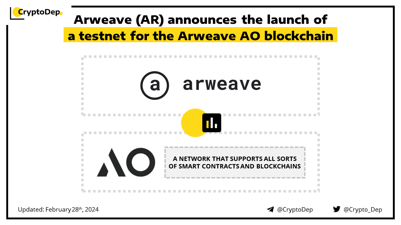 ββArweave (AR) has announced the launch of a testnet for the Arweave AO blockchain