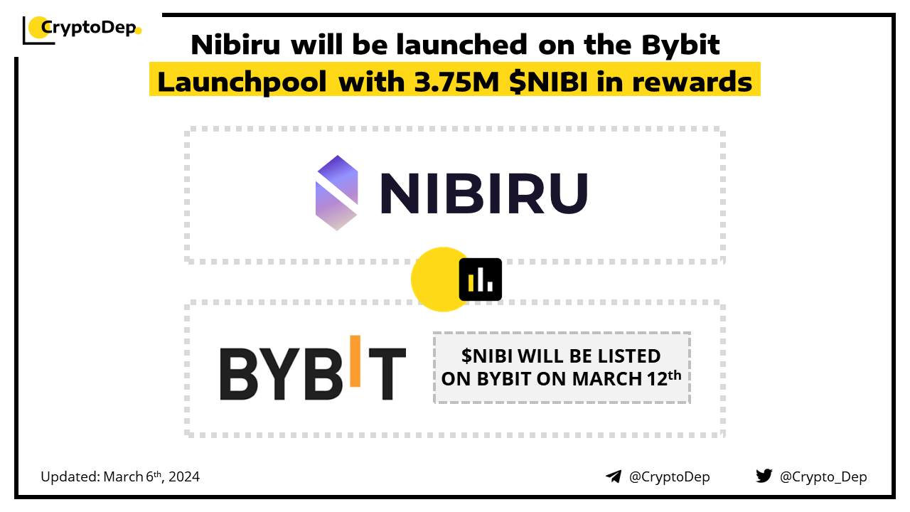 ββNibiru (NIBI) will be launched on the Bybit Launchpool with 3.75M $NIBI in rewards
