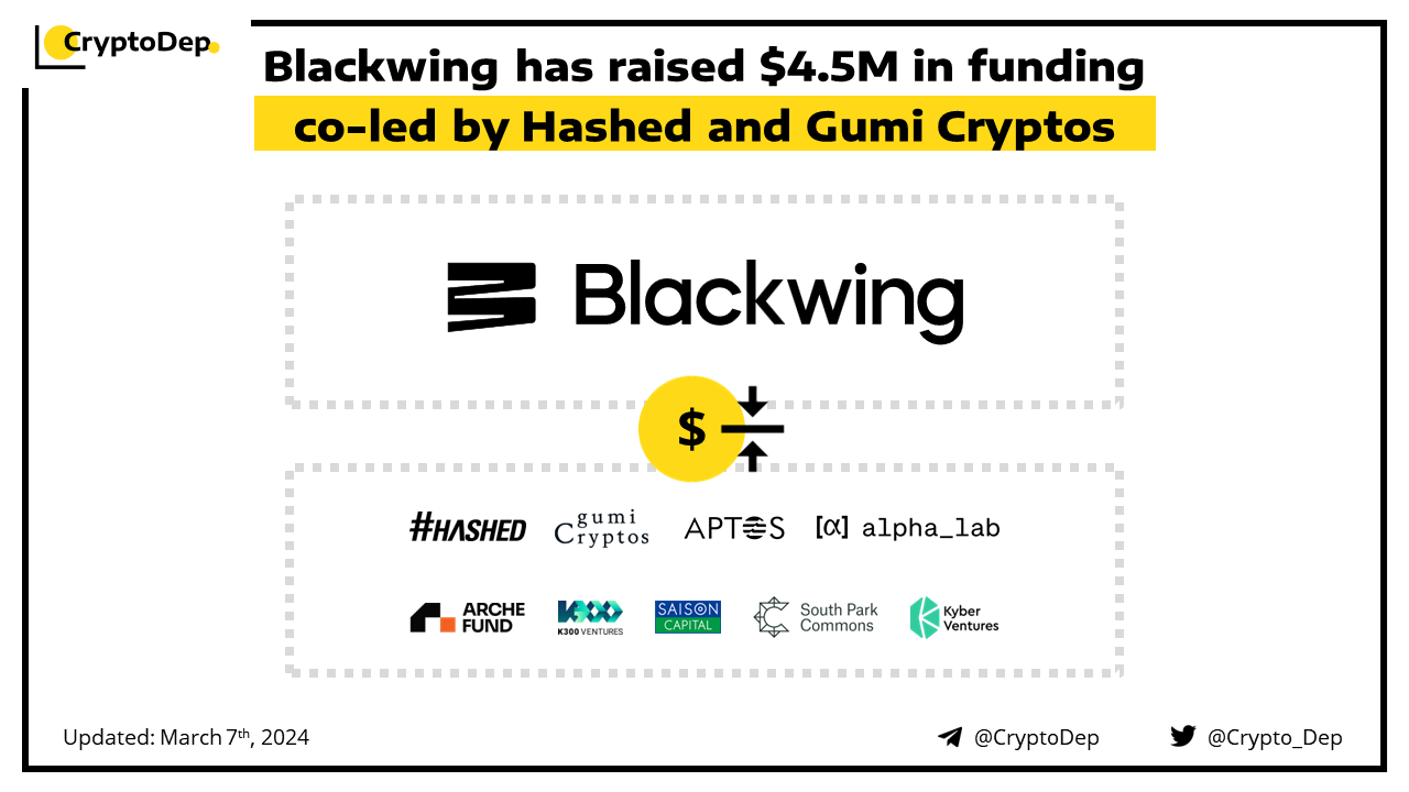 ββBlackwing has raised $4.5M in funding co-led by Hashed and Gumi Cryptos