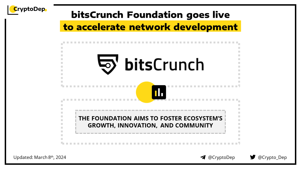 bitsCrunch has announced the launch of bitsCrunch Foundation to bolster the ecosystem growth. The Foundation will be aimed at providing support in the scopes of development, marketing, and regulatory compliance. bitsCrunch is an AI-enhanced data network that delivers NFT analytics and forensic data. It has previously conducted a $BCUT public sale on Coinlist and the launched its main network.