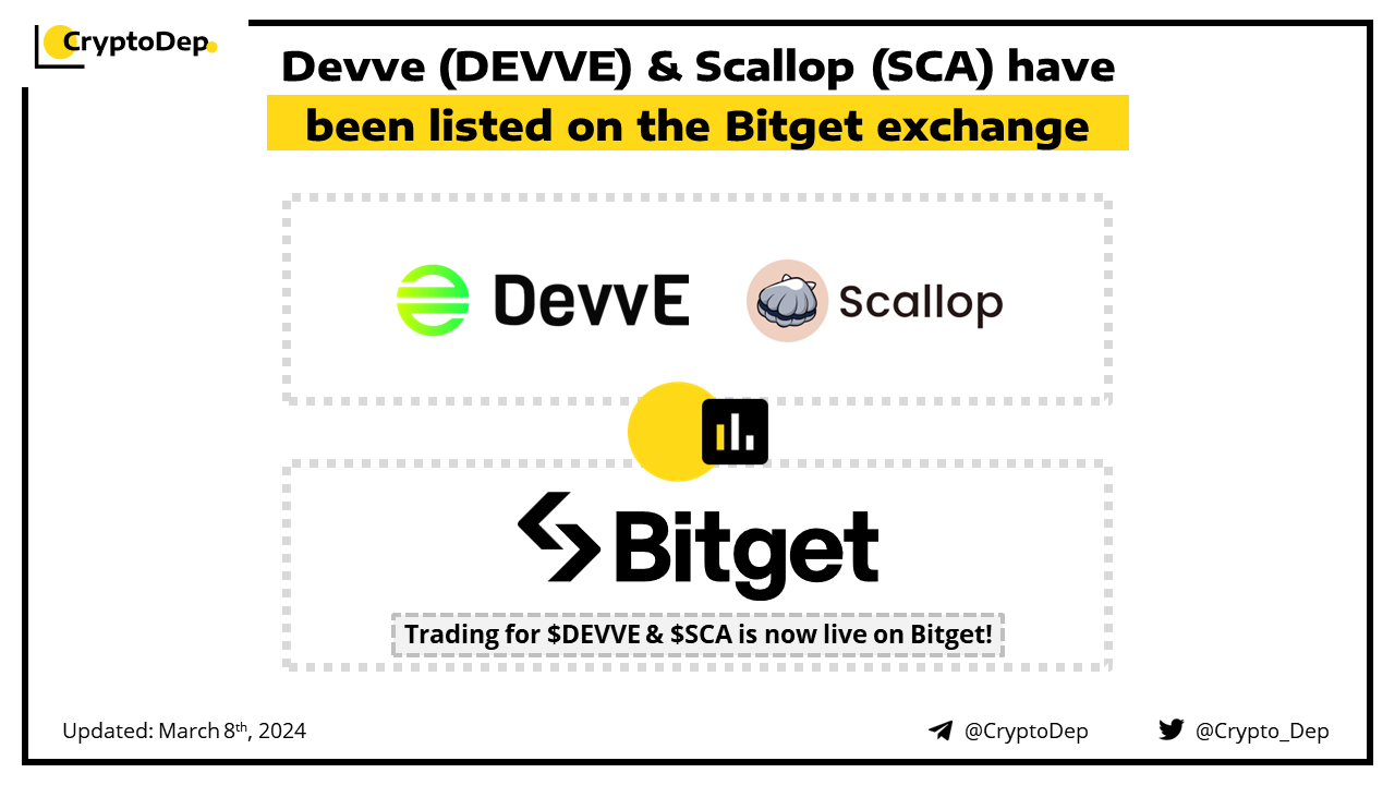 ββDevve (DEVVE) & Scallop (SCA) have been listed on the Bitget exchange