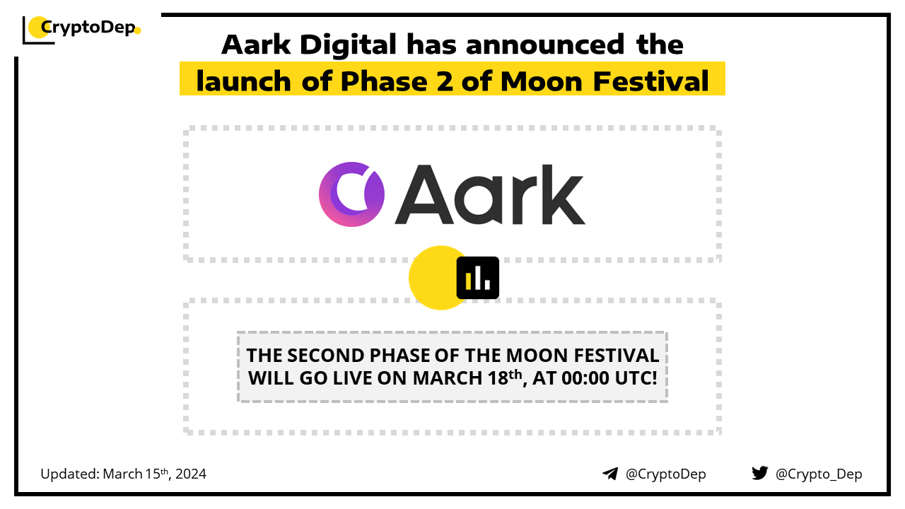 Aark Digital will launch the second phase of the Moon Festival on March 18th, at 00:00 UTC. To be eligible for a share of 10,000,000 esAARK airdrop allocation, users must have traded at GMX V1 and V2, Gains Network, Kwenta, and MUX. For completing the bonus quest, users will be able to receive 25% of the esAARK allocation in $AARK. The project has successfully conducted the first phase of Moon Festival, with 10M esAARK allocated to the airdrop. Aark Digital is the Leverage Everything Perpetual DEX for professional traders/LPs on Arbitrum, backed by Delphi Digital, OKX Ventures, Big Brain Holdings, and Keyrock.