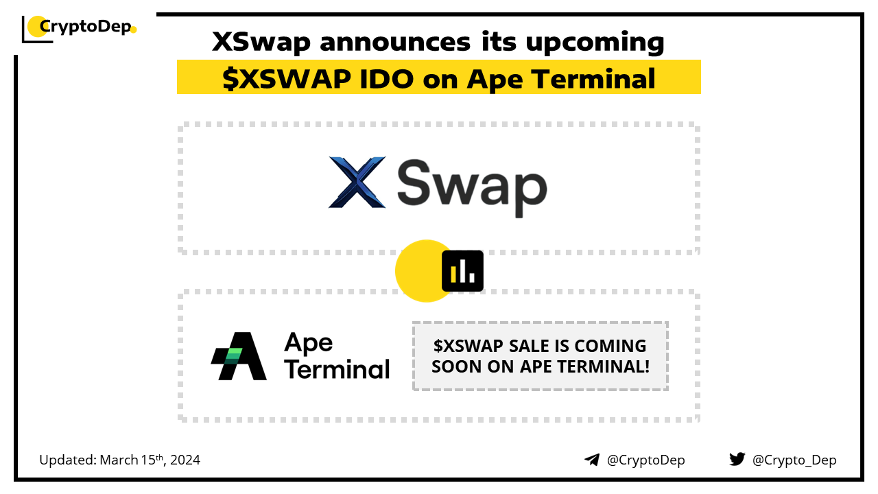 XSwap, a cross-chain swaps protocol on Chainlink CCIP, will hold the $XSWAP IDO on the Ape Terminal launchpad soon. Earlier this month, Xswap introduced the $XSWAP airdrop points system. XSwap leverages Chainlink's Cross-Chain Interoperability Protocol to provide cross-chain messages and token transfers, offering defense-in-depth security and a unified developer interface for seamless and scalable execution across blockchains.