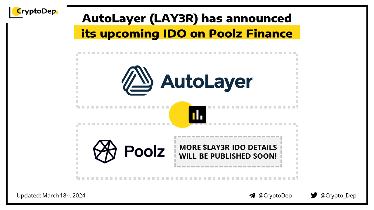 AutoLayer will conduct its $LAY3R IDO on the Poolz Finance platform in April. The project has recently introduced its new products and features centered around Liquid Staking and Restaking powered by EigenLayer. AutoLayer is the premier Liquid Restaking Tokens (LRT) Finance app on Arbitrum, backed by Kucoin Labs, Chainlink, Spark Digital Capital, Oddiyana Ventures, Black Edge Capital and others.