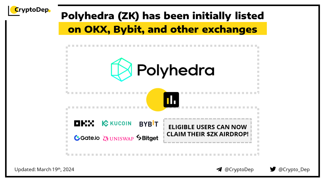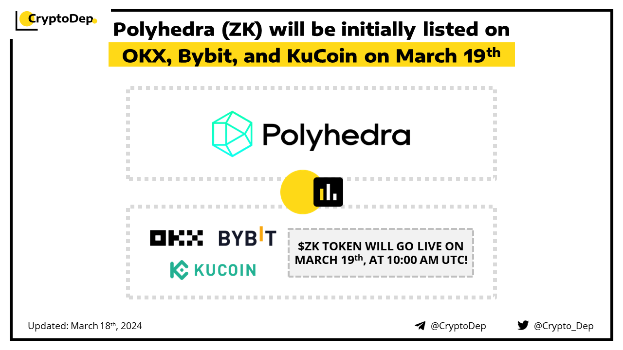 ββPolyhedra (ZK) will be initially listed on OKX, Bybit, and KuCoin on March 19th