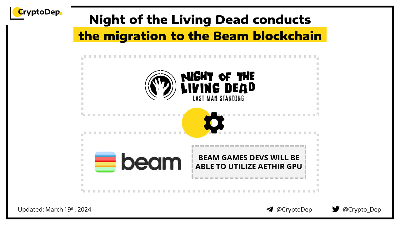 Night of the Living Dead, the latest blockbuster Web3 video game, has migrated to the Beam blockchain. This innovation will allow the project to embrace a reduction in transaction fees, privacy, security, and user engagement. Night of the Living Dead is an immersive blockchain-based P2E video game built on Unreal Engine.