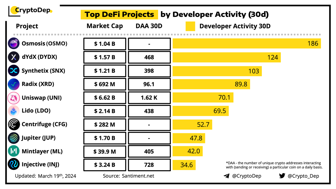 ββTop DeFi Projects by Developer Activity