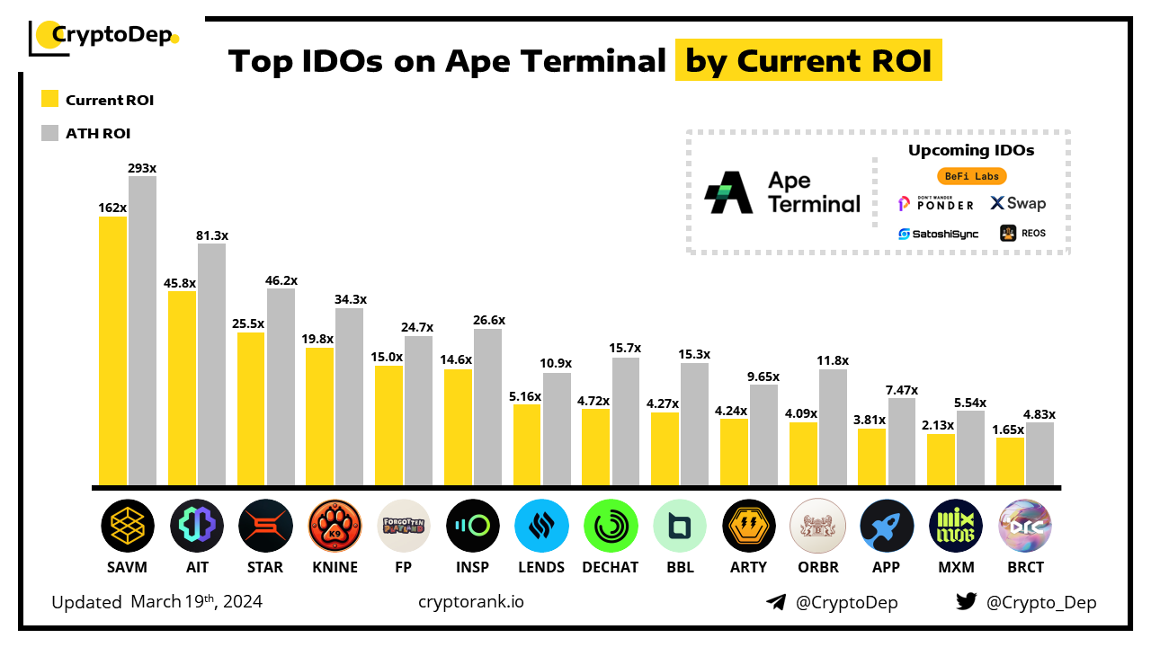 ββTop IDOs on Ape Terminal by Current ROI