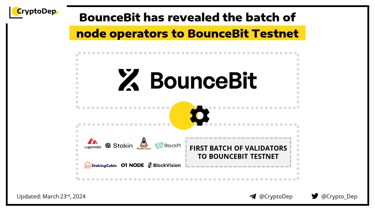 BounceBit has successfully onboarded its first batch of validators to BounceBit Testnet. Among the node operators are Luganodes, BlockHunters, Nodes.Guru, Stakin, StakingCabin, BlockPI, BlockVision, 01node, and others. A second batch to be announced soon.