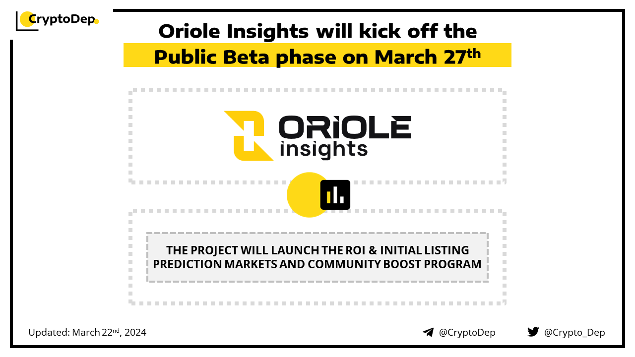 Oriole Insights Public Beta will go live on March 27th, along with new features including ROI & initial listing prediction markets, community boost program launch, and a $1,000 Galxe campaign. Moreover, the project will reward all active Closed Beta users with the βOGβ user type, and distribute 1,000 $ORI each for the first 1,000 users.