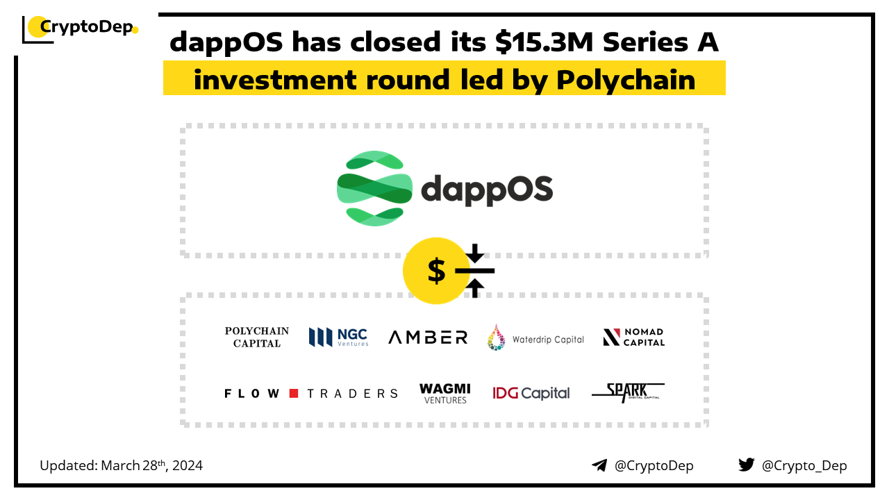 Additional round participants included Nomad Capital, IDG Capital, Flow Traders, IOBC, NGC Ventures, Amber Group, Uphonest, Taihill, Waterdrip, Wagmi Ventures, Bing Ventures, Spark Capital and Metalpha among others. dappOS has previously received an investment from Binance Labs as one of the five best-performing projects of Season 5 of its Incubation Program. dappOS is an intent execution network that empowers chains and dApps to be intent-centric.