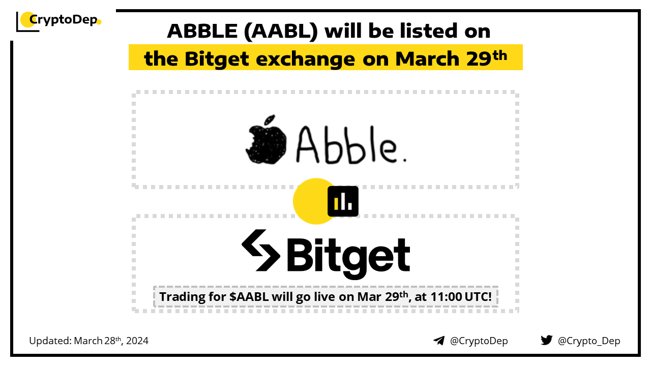 ββABBLE (AABL) will be listed on the Bitget exchange on March 29th